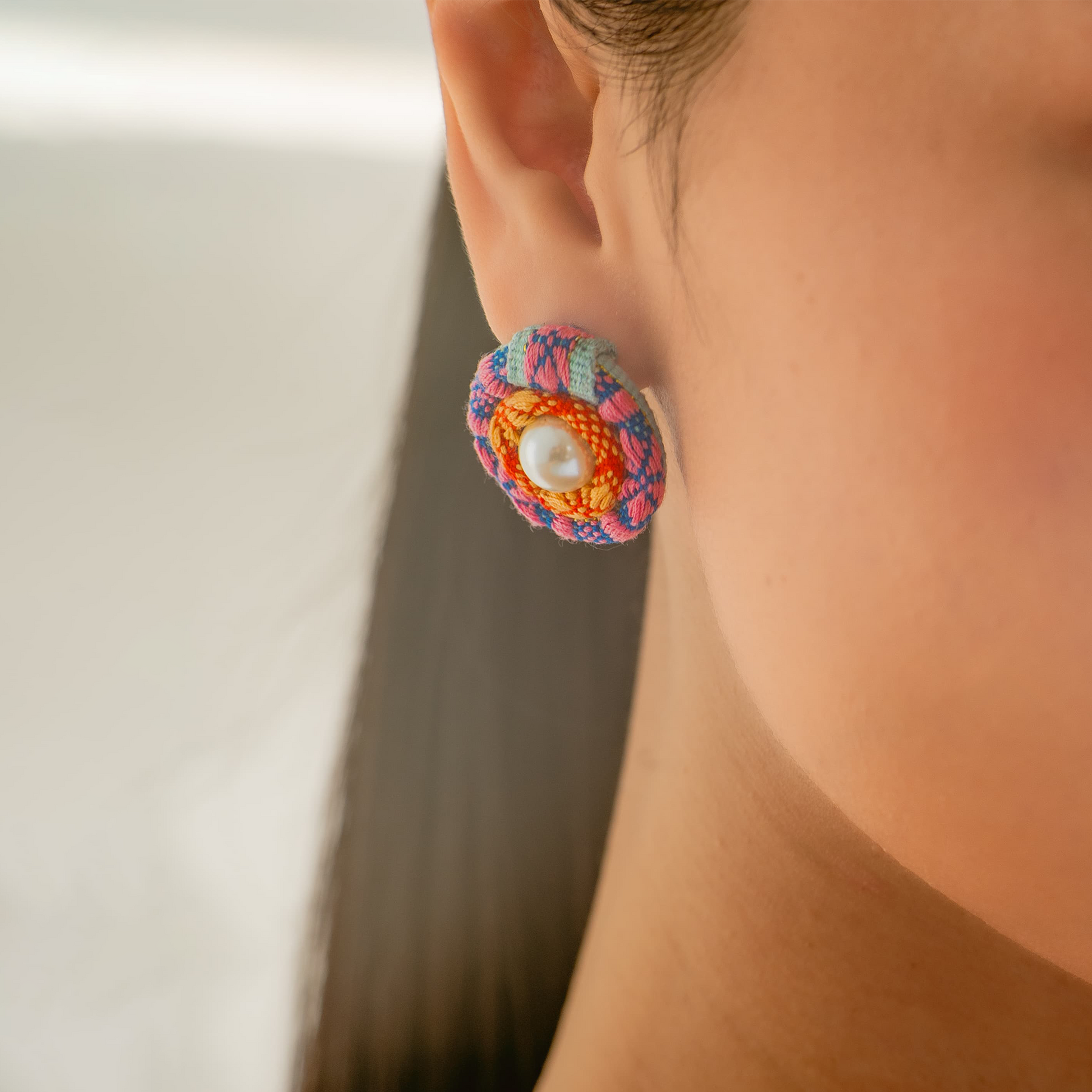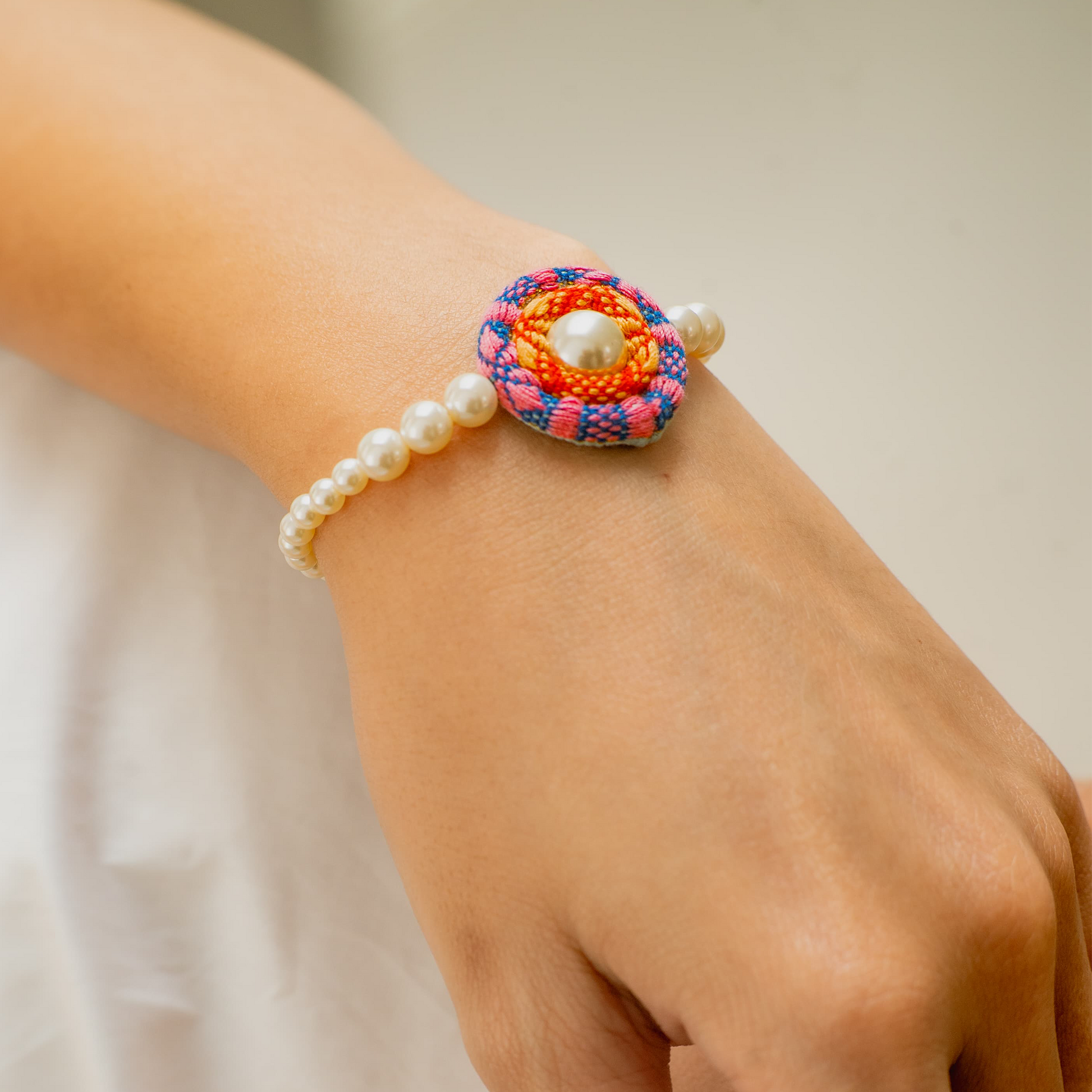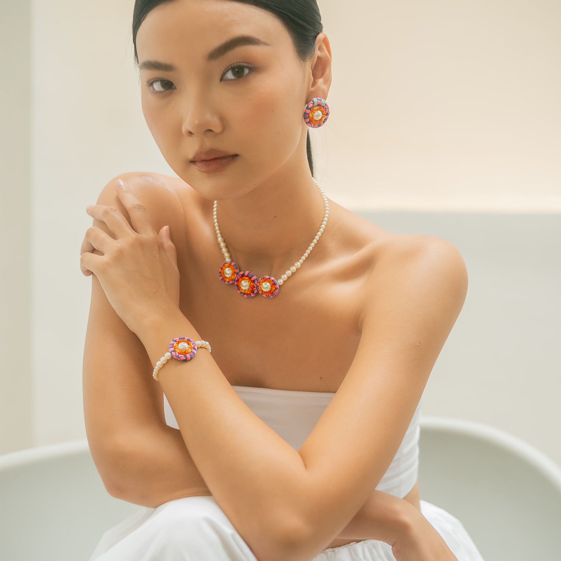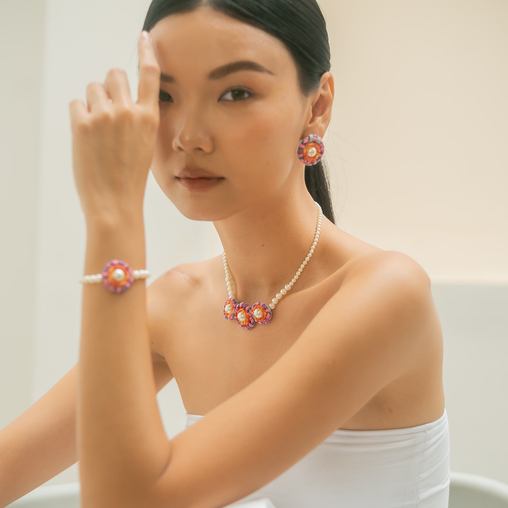 Chất liệu: Thổ cẩm Ba-na dệt tay, hạt trai Swarovki